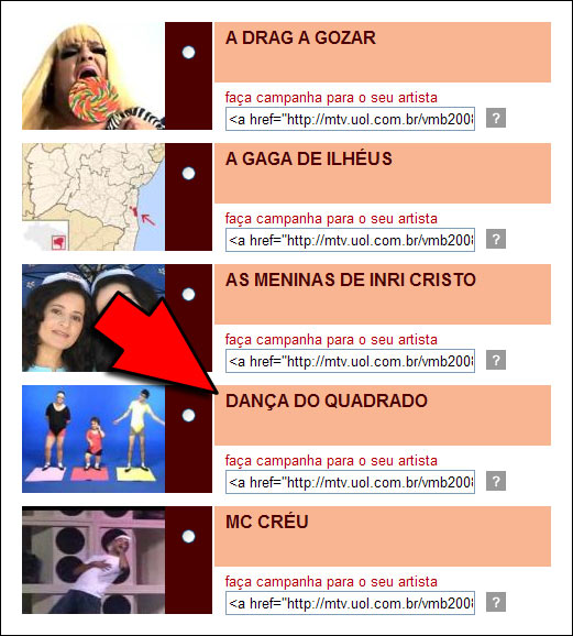 Pronto. Agora que vocês sabem qual o novo hit das eleições, adivinhem quem está concorrendo ao VMB, da MTV, na categoria “Web Hit”.