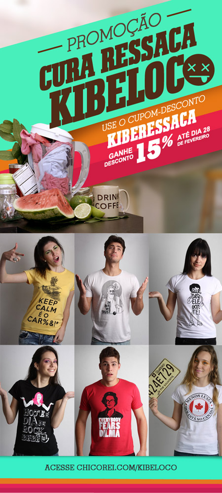 Isso mesmo! Para comprar as camisetas do Kibe Loco na Chico Rei com desconto de 15%, basta clicar AQUI, escrever “KIBERESSACA” (sem aspas) no campo do cupom-desconto e ser feliz. Mas corra que a promoção é só até hoje!