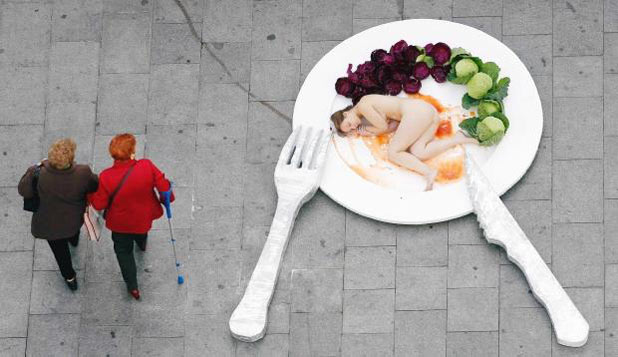 É o tipo de protesto que faz você pensar que comer carne é um mal passado.