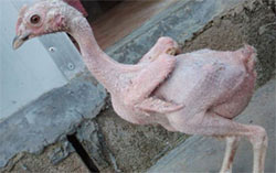 Galinha sem pena sofre bullying das companheiras em fazenda