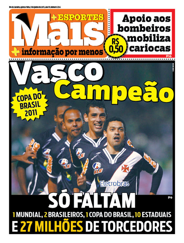 O jornal “Mais”, que circula no Rio de Janeiro e em São Paulo, tem uma linha editorial bastante popular. Tão popular que, um dia depois da final da Copa do Brasil, estampou na capa uma provocação para lá de flamenguista contra o Vasco da Gama…