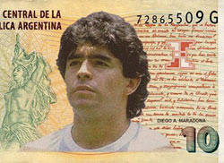Argentinos querem Maradona estampado nas notas de 10