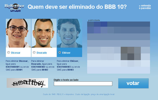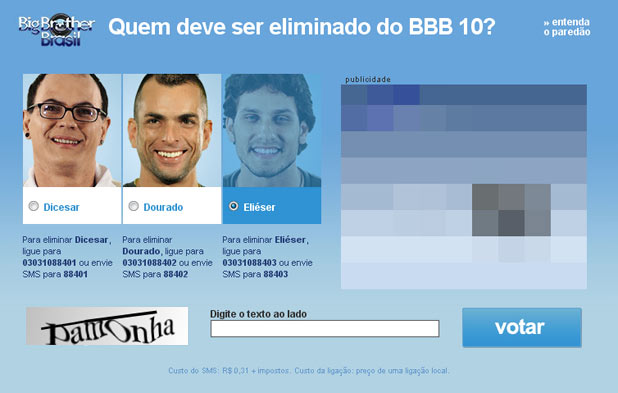 Se depender das palavras de confirmação no site do BBB, Eliéser já pode sair do armá… digo… da casa.