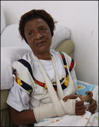 A camareira, que tem apenas 42 kg, precisou ser levada a um hospital, onde imobilizou os dois braços devido a luxações nos punhos, resultado do impacto da queda.