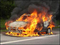 Carro pega fogo em rodovia no litoral de São Paulo