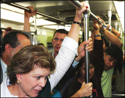 A ex-prefeita Marta Suplicy, pré-candidata à Prefeitura de São Paulo, fez uma viagem de ônibus entre o Terminal Santa Cecília, no centro da cidade, e o bairro da Lapa, na zona oeste. A ministra chegou ao ponto às 14h27 e o ônibus só chegou às 14h48.