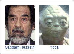 … mas outros são simplesmente bizarros. Por exemplo: quando misturamos as imagens do ex-ditador iraquiano Saddam Hussein e de Yoda, mestre Jedi da série “Guerra nas Estrelas”…