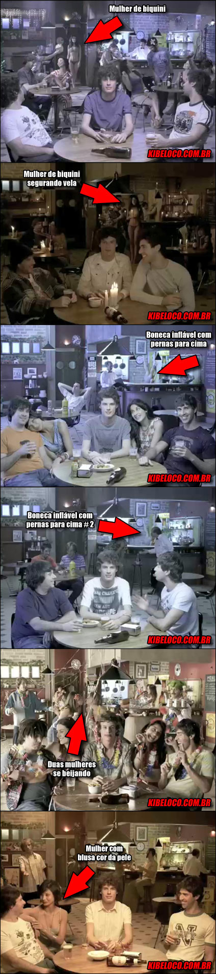 A modelo que circula pelo cenário está com um biquini cor da pele, que na velocidade da edição e com a baixa qualidade do vídeo do YouTube, fica “invisível”.