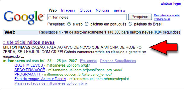 Vão até o Google e procurem por “Milton Neves”. Vocês também acharam isso???