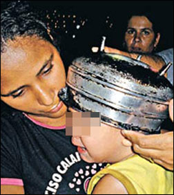 Como o menino chorava muito, a família resolveu chamar o Corpo de Bombeiros. Os militares usaram óleo de cozinha e detergente para retirar a panela da cabeça do garoto, que não ficou ferido nem precisou de atendimento médico. “Foi só um susto. Graças a Deus agora ele está bem”, agradeceu dona Geralda.