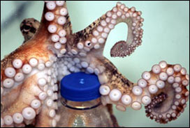 Polvo aprende a abrir garrafa na Nova Zelândia
