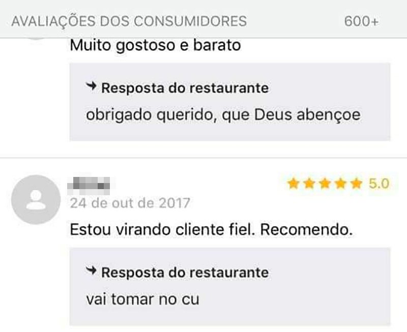 Os aplicativos de comida são muito críticos quanto às avaliações dos clientes.